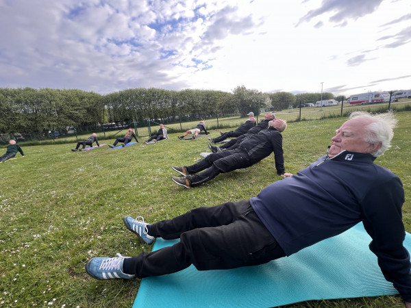 Utegympa i maj börjar bli en tradition, så också det gånga året. Och som traditionen bjuder så avslutas vårterminens sista gympapass med grillad korv och tillbehör.